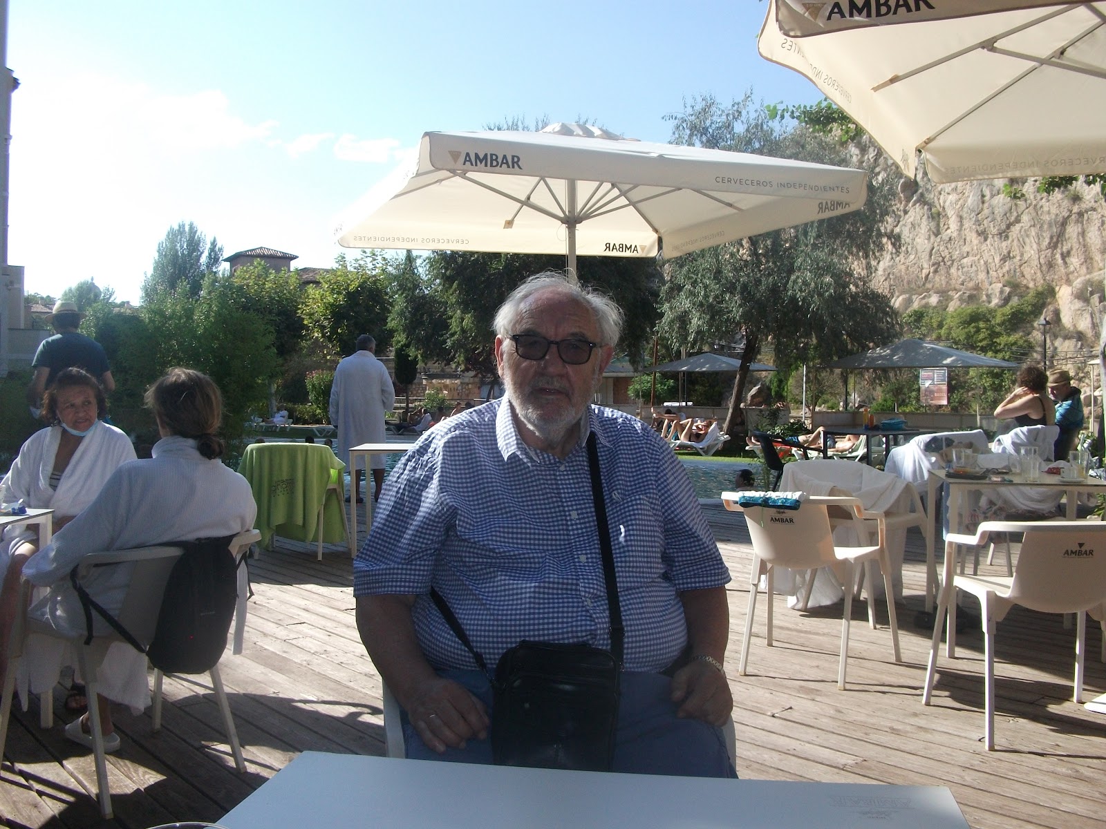 que llegaba con una cachava de Segovia y un libro en la mano. Venía resoplando